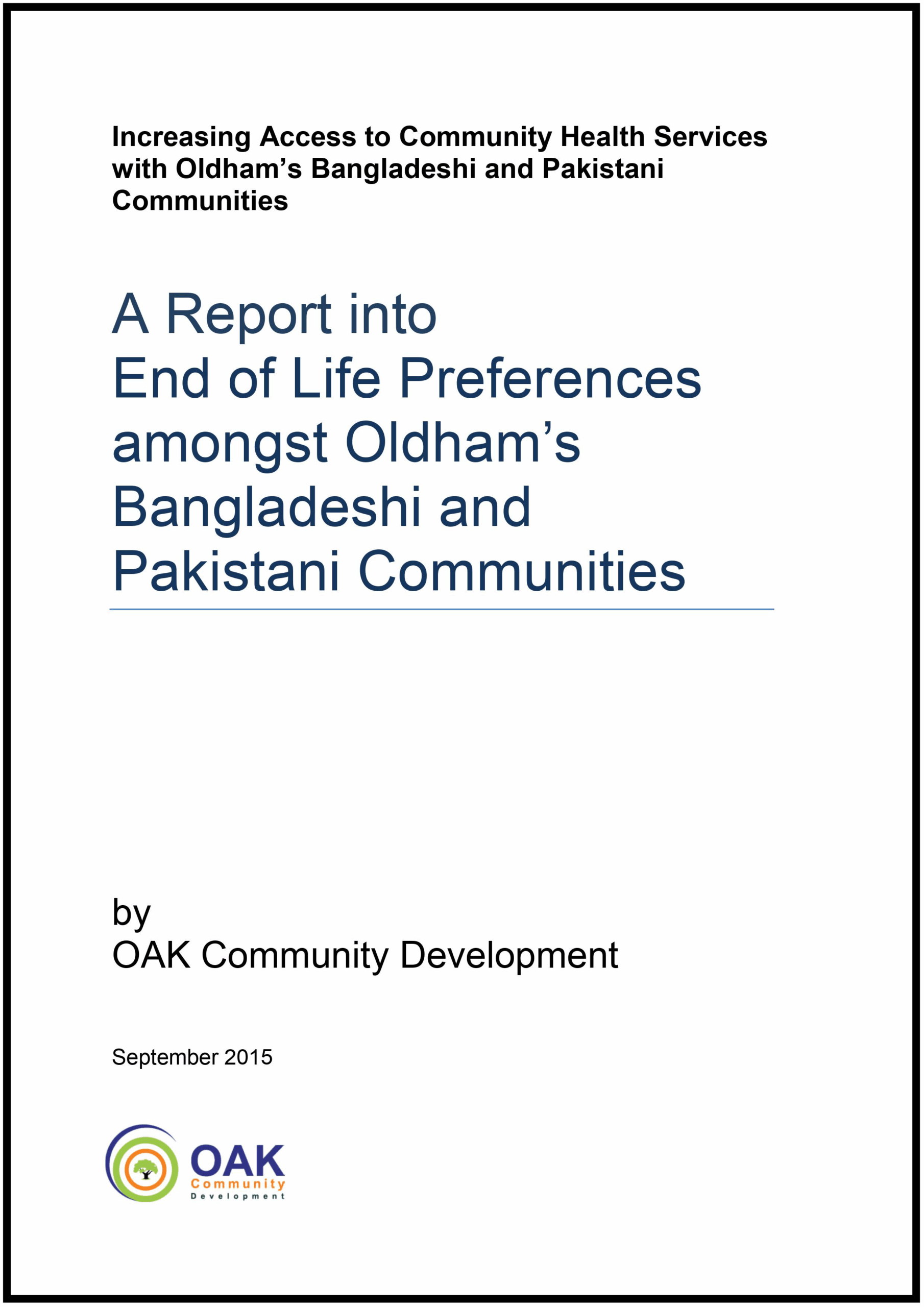 Increasing Access to Community Health Services with Oldham's Bangladeshi and Pakistani Communities.